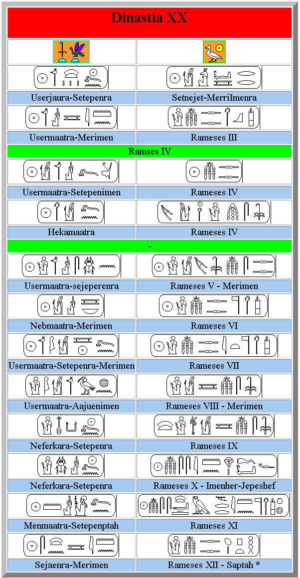 * Wallis Budge menciona en uno de sus libros el cartucho de Rameses XII pero este faraón no es seguro de que existiera.