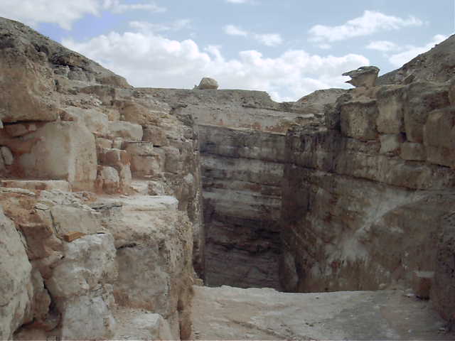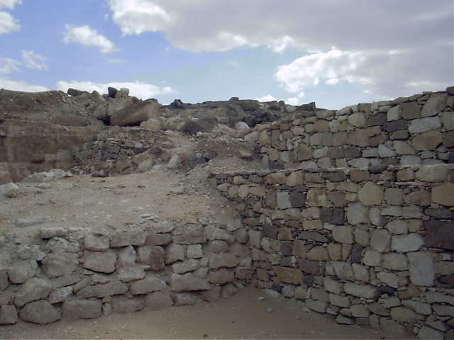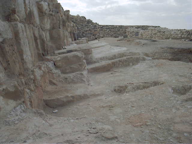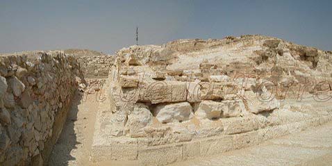 otro lado de la rampa permanece sin excavar y muestra la misma hilera.