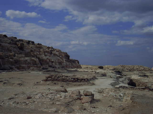Sobre la rampa y la pirámide, queda una hilera de bloques abandonados. El