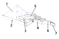 y una zona interior con 5 nichos para estatuas. El templo (5) era