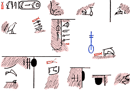 cámaras de descarga. He marcado también en azul, el signo nefer,