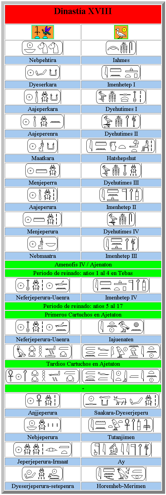 Estos son los cartuchos reales correspondientes a esta dinastía: