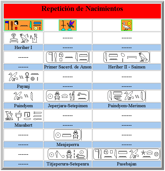 En el año 19 de reinado de Rameses XI el gran Sacerdote de Amón, Imenhetep, fue cesado por decisión real por faltas muy graves y sustituido por Heriher. Este no pertenecía al clero ya que era militar y persona de confianza del faraón. Pero Heriher era ambicioso y poco a poco se fue apoderando de cargos de importancia llegando incluso a establecer una doble fecha: la del reinado de Rameses XI y la suya. A esta época se la conoce con el nombre de Repetición de Nacimientos.