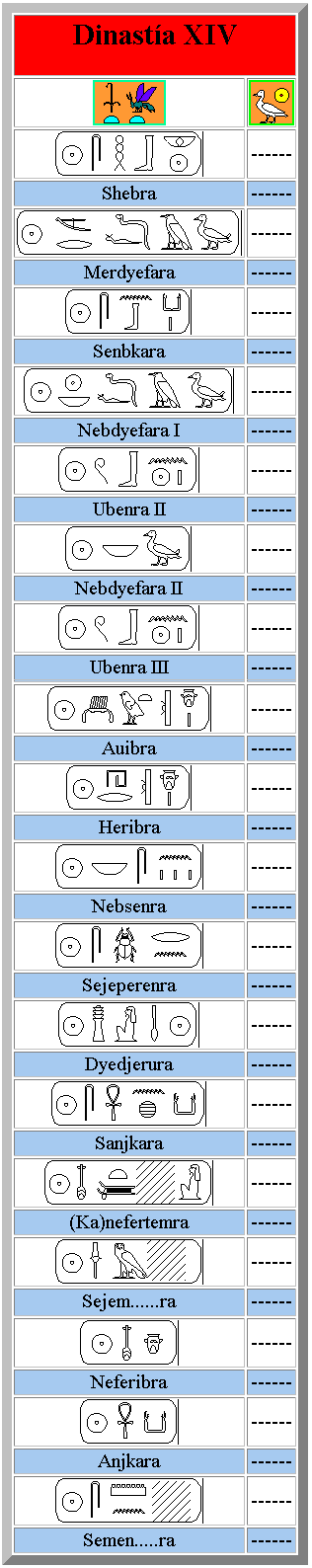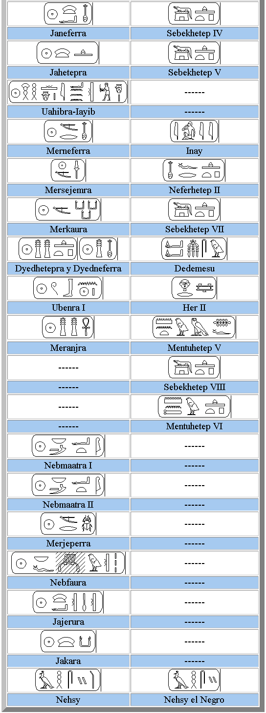 Estos son los cartuchos reales correspondientes a esta dinastía: