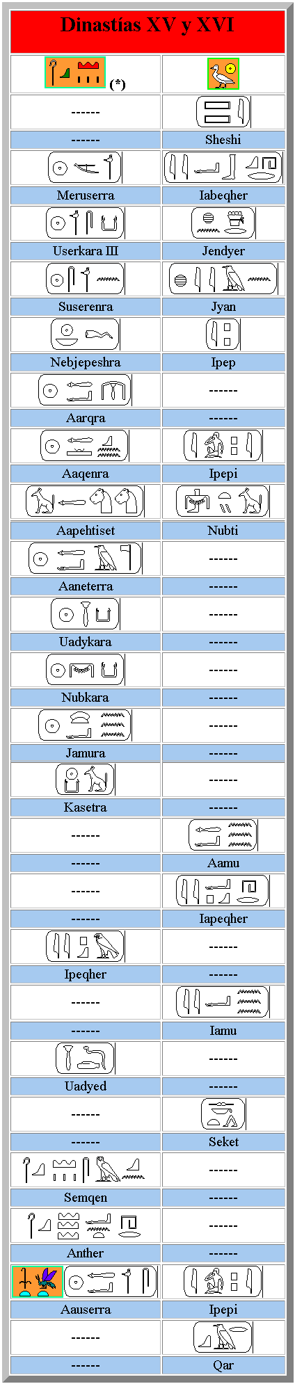 * La mayoría de los Hicsos adoptaron el nombre de Gobernador de Países Extranjeros en lugar de Rey del Alto y Bajo Egipto.