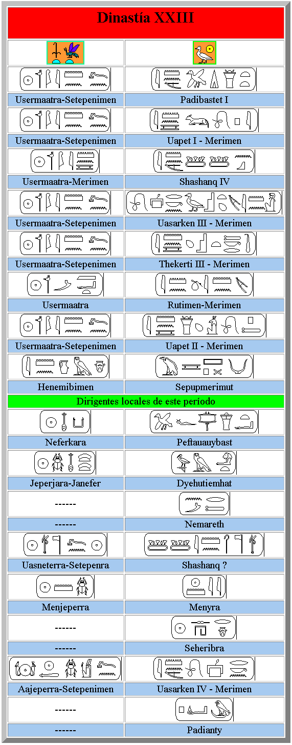 Hay que aclarar que la dinastía XXIII desde su fundación corrió paralela a la XXII siguiendo estando en esta la capital en Tanis.